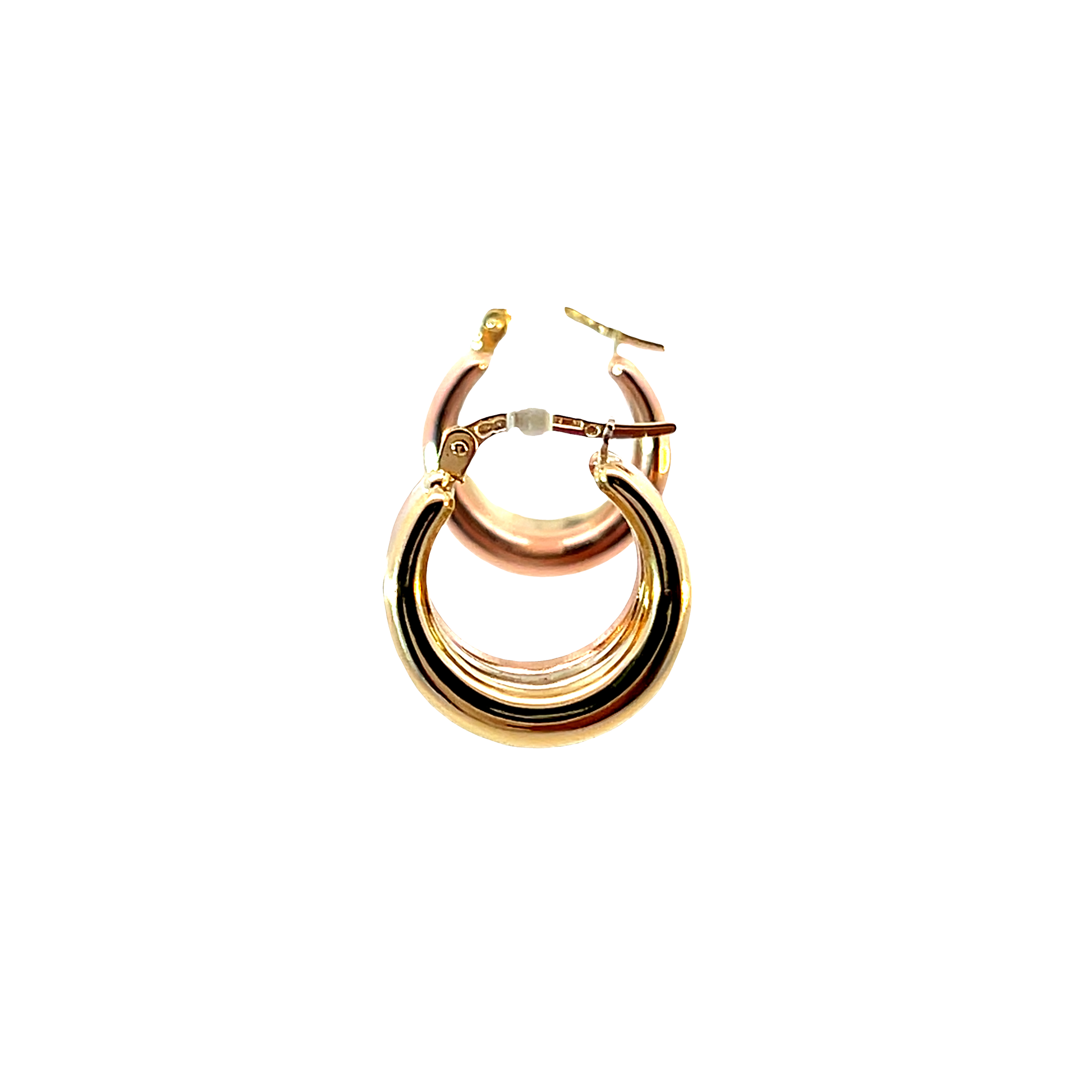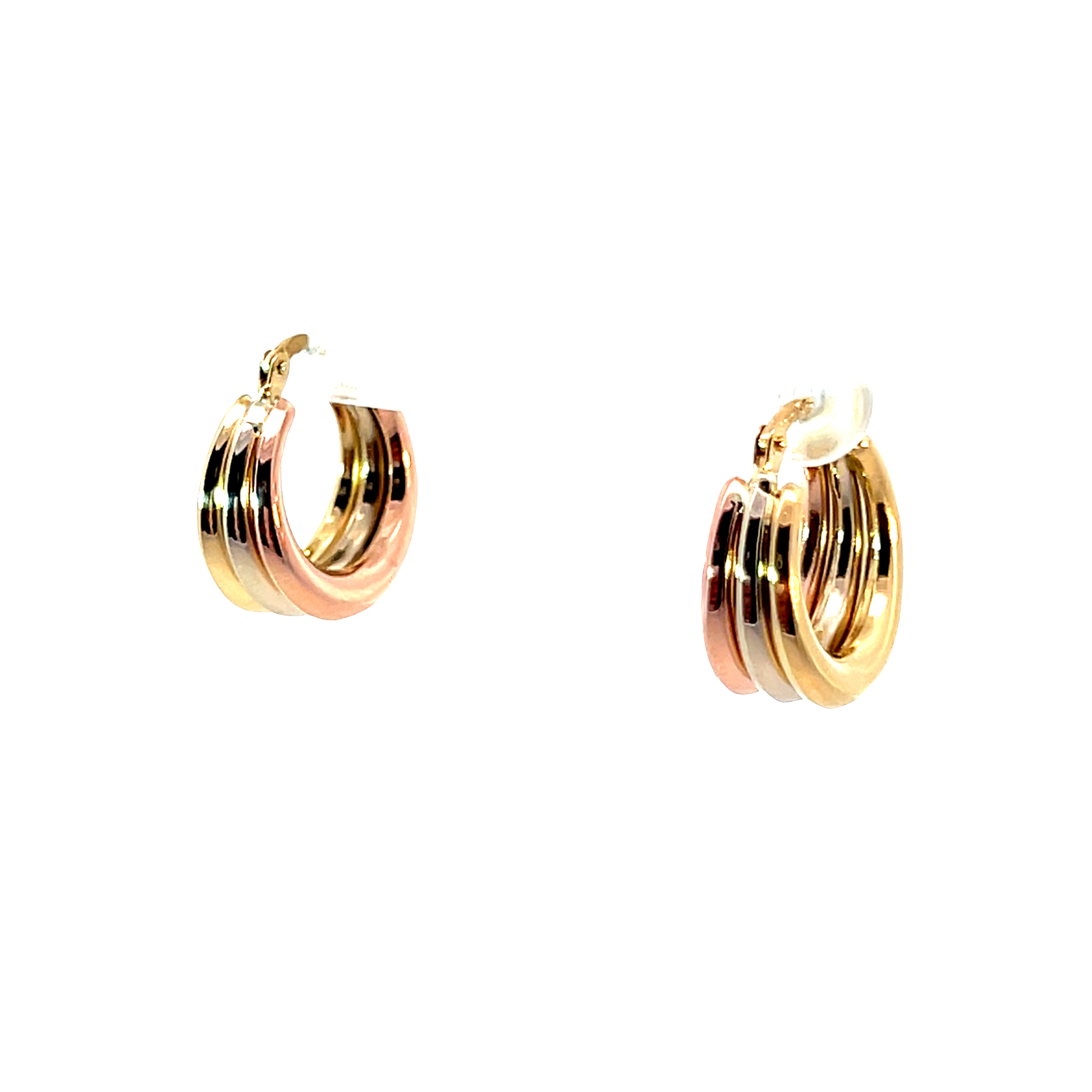 Elegante Creolen aus mehrfarbigem Gold. Diese Ohrringe vereinen Gelb-, Rosé- und Weißgold zu einem harmonischen Design. Perfekt für den täglichen Gebrauch oder besondere Anlässe, verleihen sie jedem Outfit einen Hauch von Raffinesse.