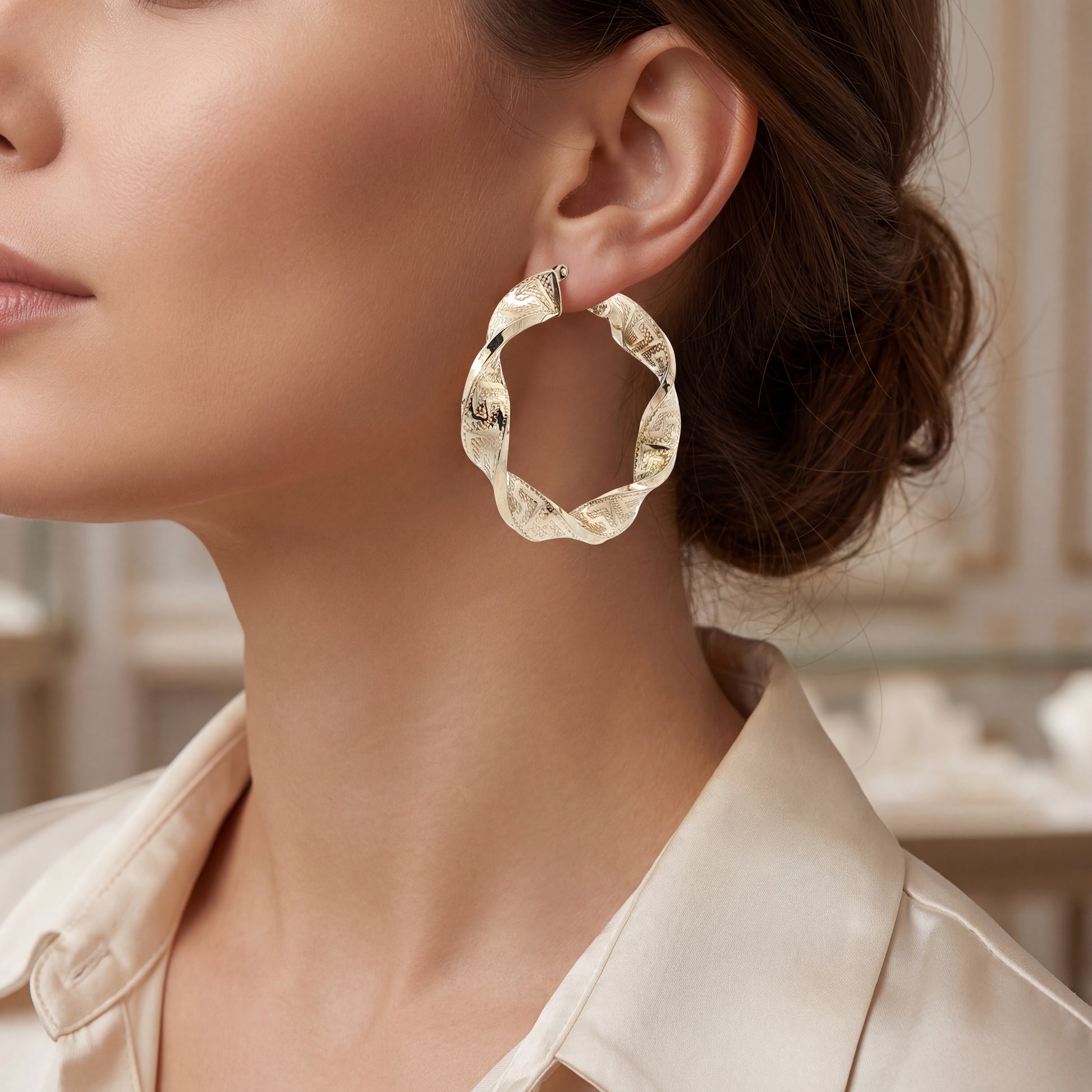 Elegante Creolen aus hochwertigem Gelbgold 585 (14 Karat) mit einem Durchmesser von 41,5 mm. Diese zeitlosen Ohrringe bestehen aus feinem Gold und präsentieren ein exquisites, detailliertes Muster, das Eleganz und Raffinesse ausstrahlt. Perfekt für besondere Anlässe oder als täglicher Schmuckbegleiter. Die klassische Creolen-Form macht sie zu einem vielseitigen Accessoire, das zu jedem Outfit passt. Ein hochwertiges Schmuckstück, das Beständigkeit und Schönheit vereint.