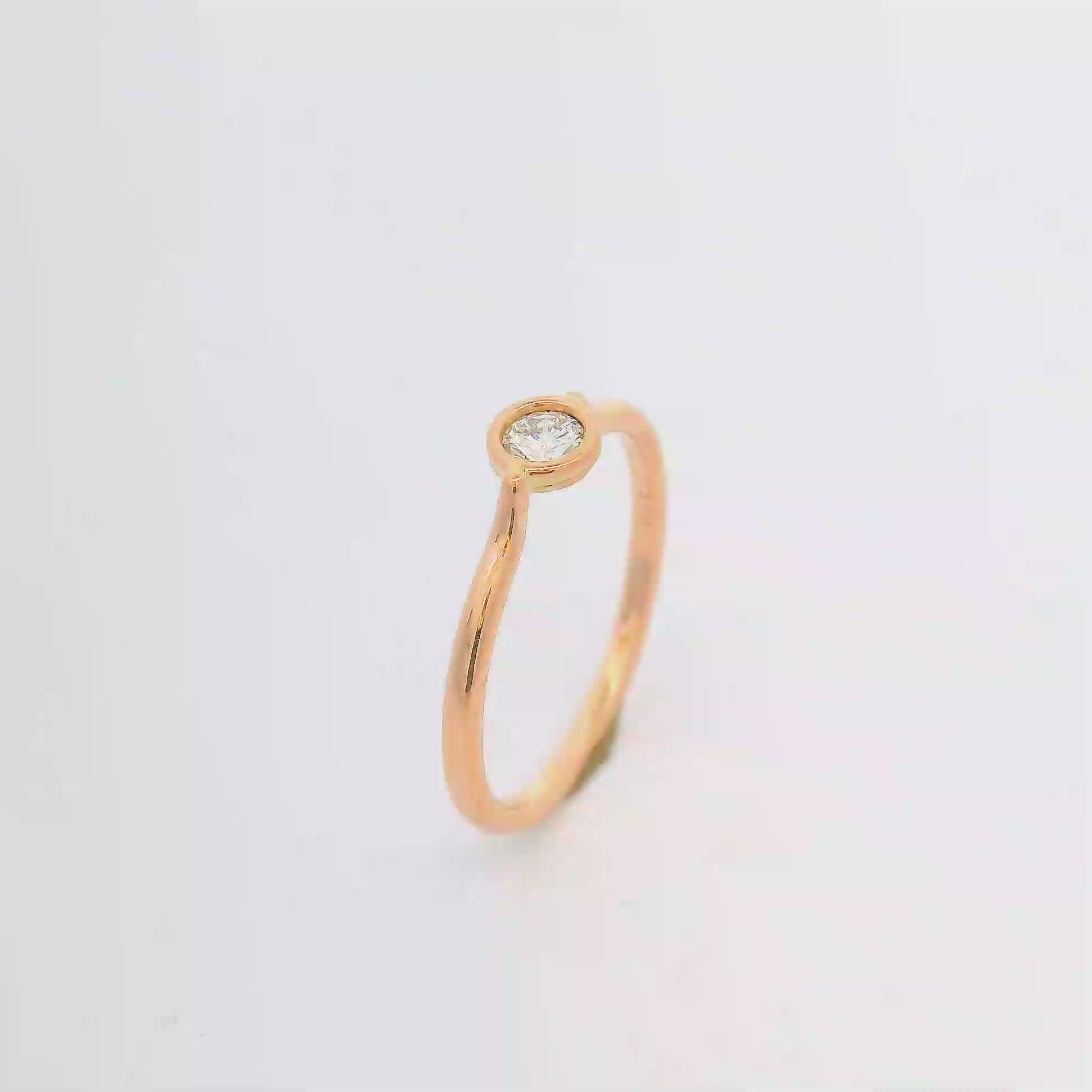 Dieser bezaubernde Solitärring ist aus zartem Roségold gefertigt und trägt einen strahlenden Brillanten. Die schlichte Eleganz des Designs macht diesen Ring zu einem zeitlosen Schmuckstück. Perfekt für einen besonderen Anlass oder als liebevolles Geschenk.
