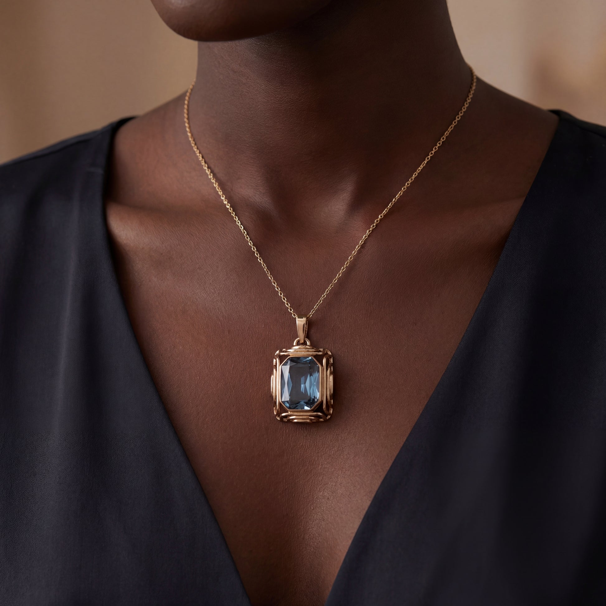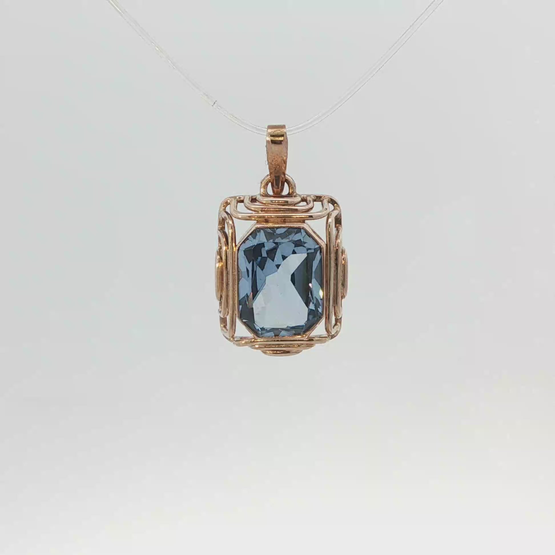Dieser exquisite Anhänger ist aus edlem Roségold gefertigt und besticht durch sein zeitloses Design. Ein blauer Kristall im Smaragdschliff verleiht dem Schmuckstück eine elegante Note. Der facettierte Schliff des Kristalls sorgt für ein funkelndes Lichtspiel. Ein besonderes Schmuckstück für stilvolle Auftritte.