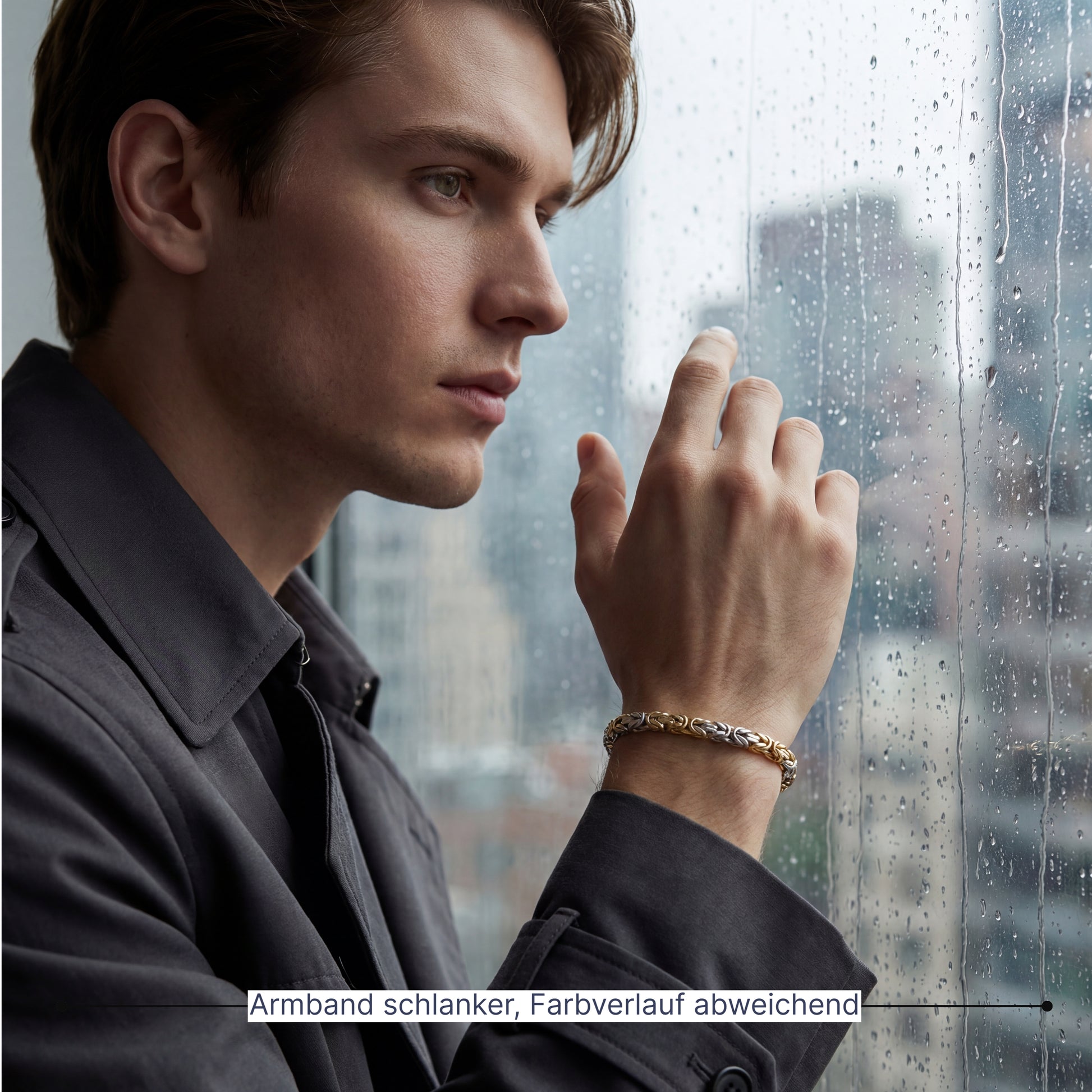 Elegantes Bicolor-Armband aus 750er Gold mit harmonischer Kombination aus Weiß- und Gelbgold. Das hochwertige Schmuckstück besticht durch seine zeitlose Gestaltung und eignet sich perfekt als täglicher Begleiter oder besonderes Geschenk. Mit einer Länge von 18,5 cm bietet es optimale Tragekomfort und Passform. Die sorgfältige Verarbeitung garantiert Langlebigkeit und Glanz über Jahre hinweg. Ein Investment in klassischen Luxus, das niemals an Eleganz verliert.