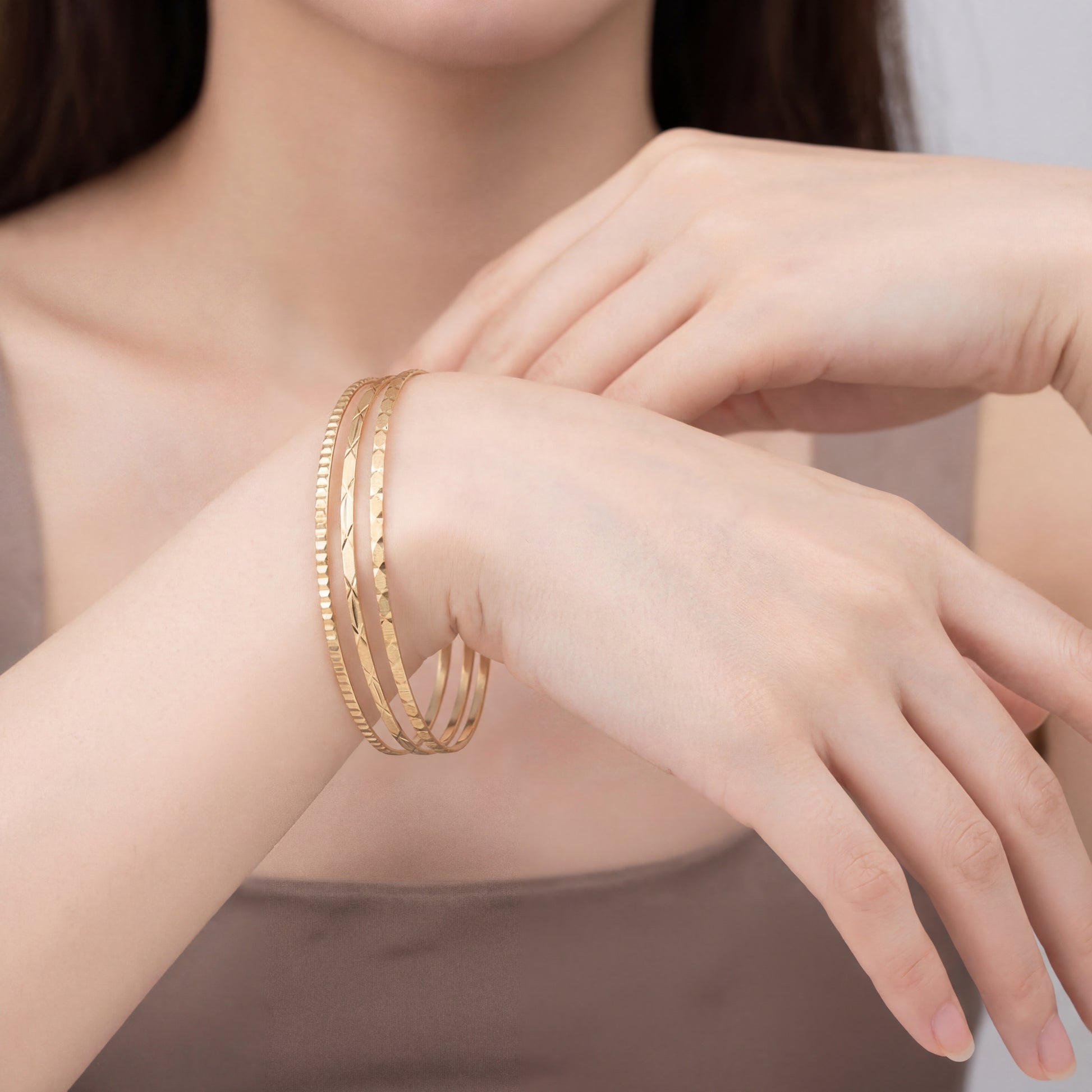 Dieser eleganten Armreifen aus feinstem Gelbgold bestechen durch ihre meisterhafte Verarbeitung und das markante Design. Die glänzend polierte Oberfläche ist mit präzisen Gravuren und symbolischen Zeichnungen verziert, die jedem Schmuckstück einen individuellen Charakter verleihen. Dank der klassischen runden Form und der erstklassigen Symmetrie schmiegen die Reifen perfekt an das Handgelenk an. Ein zeitloses Accessoire, das durch seine luxuriöse Goldkomposition und die detailreiche Anordnung der Gravuren als echtes Statement-Piece überzeugt.