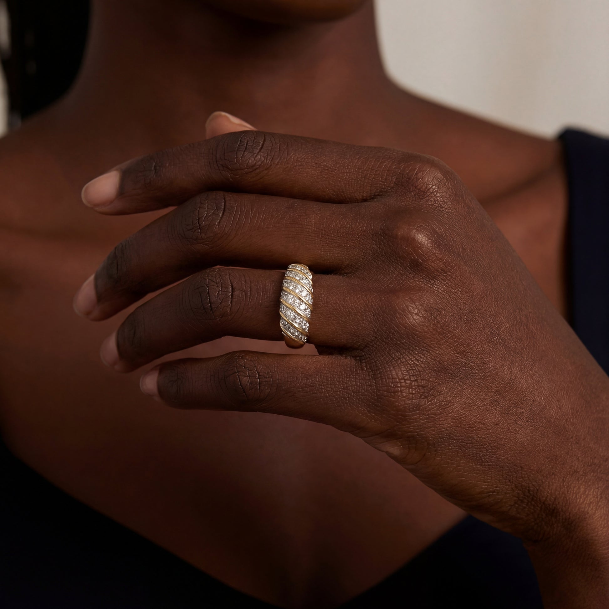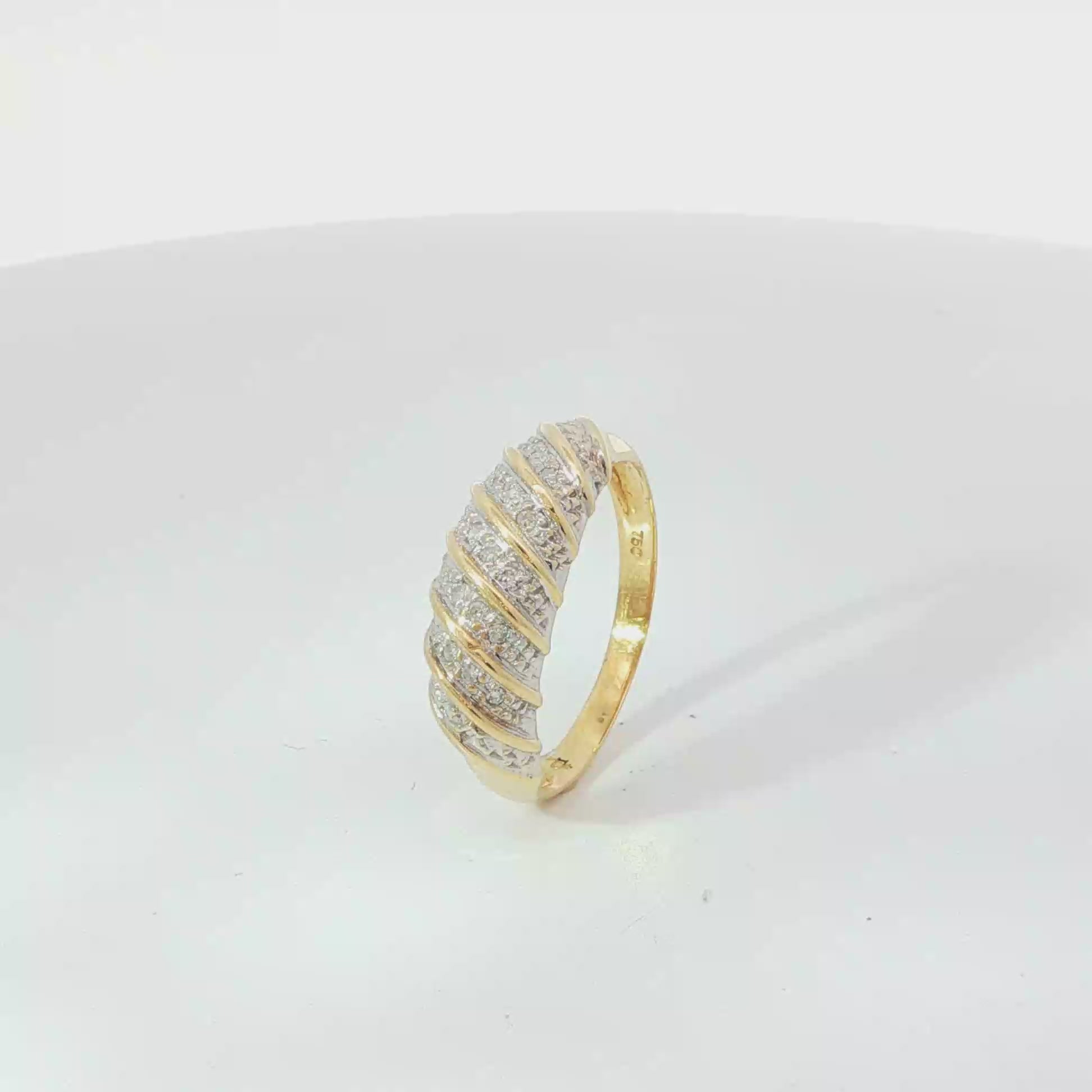 Dieser atemberaubende Mehrsteinring ist in warmem Gelbgold gefertigt und mit 18 funkelnden Diamanten im Brillantschliff mit einem Gesamtgewicht von 0,75ct besetzt. Die sorgfältige Anordnung der Steine und das polierte Gold sorgen für einen luxuriösen Glanz. Ein zeitloses Schmuckstück, das Eleganz und Stil vereint.