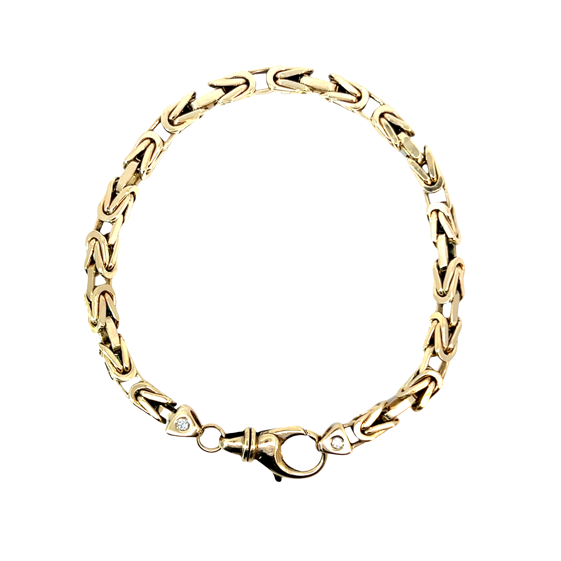 Erleben Sie zeitlose Eleganz mit diesem exquisiten gelbgoldenen Königsarmband. Dieses Kettenarmband zeichnet sich durch seine feine Verarbeitung und die funkelnden Diamanten im Brillantschliff aus. Ein luxuriöses Schmuckstück, das Stil und Wert vereint.